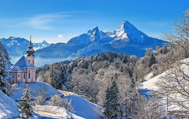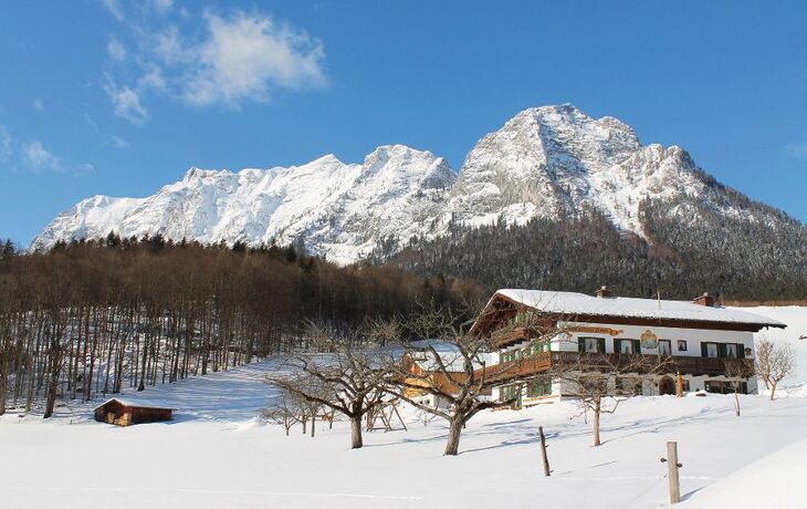 Berge und Täler, Seen und Bäche präsentieren sich im winterweißen Kleid. Glitzernde Schneekristalle erstrahlen im Sonnenschein. Das Berchtesgadener Land verwöhnt Sie mit winterlicher Reinheit, klarer Luft und einem atemberaubenden Panorama. Für Ihre Wanderungen ist ein Wegenetz von insgesamt 120 km geräumt. Aber auch auf einsamen Pfaden können Sie mit Schneeschuhen die Bergwelt erleben. Eisstockschießen am Hintersee oder Aschauerweiher, Eislaufen in der Eishalle in Berchtesgaden oder Rodeln auf Naturrodelbahnen bieten abwechslungsreichen Winterspaß. 50 Kilometer interessante Abfahrten in Höhenlagen zwischen 600 und 1800 Metern sowie 83 Kilometer gespurte Langlaufloipen stehen bereit für Ihr Skisport-Erlebnis. Erleben Sie eine wahre Märchenlandschaft inmitten der zauberhaften Bergwelt des Berchtesgadener Landes, dessen höchste Erhebung der Watzmann mit 2713 m ist.
